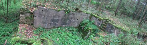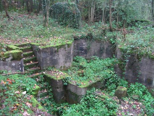 Bachaufwärts von der schönen Auermühle im Angerbachtal bei Ratingen erkennt man noch heute im Gelände Stützmauern, Fundamentreste und einen Bunker. Bei diesen Bauwerksresten handelt es sich jedoch nicht um eine Kriegseinrichtung. Hier wurde der Formensand der Sandgrube Hahnerhof auf die Eisenbahn verladen.